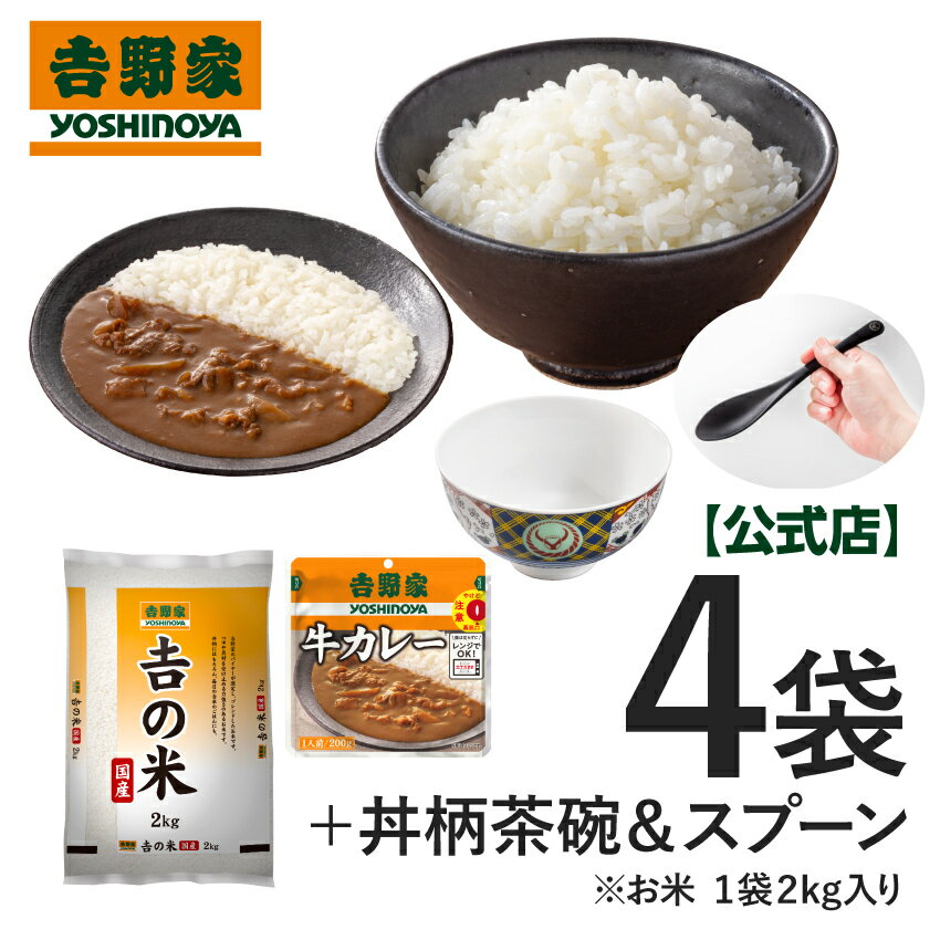 \令和7年産の新米/ 吉野家 公式 【常温】国産「吉の米」 2kg(1袋)+カレー3袋/茶碗・スプーン 各1【冷凍商品/メール便商品同時購入不可】2kg 国産米 新米 令和七年 米 精米 お米 おこめ 白米 ギフト プレゼント お歳暮 お年賀 令和7年産 新米使用