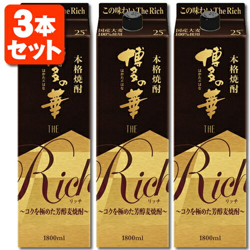 【3本セット送料無料】本格麦焼酎 博多の華 ザ リッチ 25度1800ml(1.8L)パック×3本※沖縄県は送料無料対象外 合同酒精 オエノン 福徳長 麦焼酎 はかたのはな The Rich ザ・リッチ[T.001.2303.10.SE]