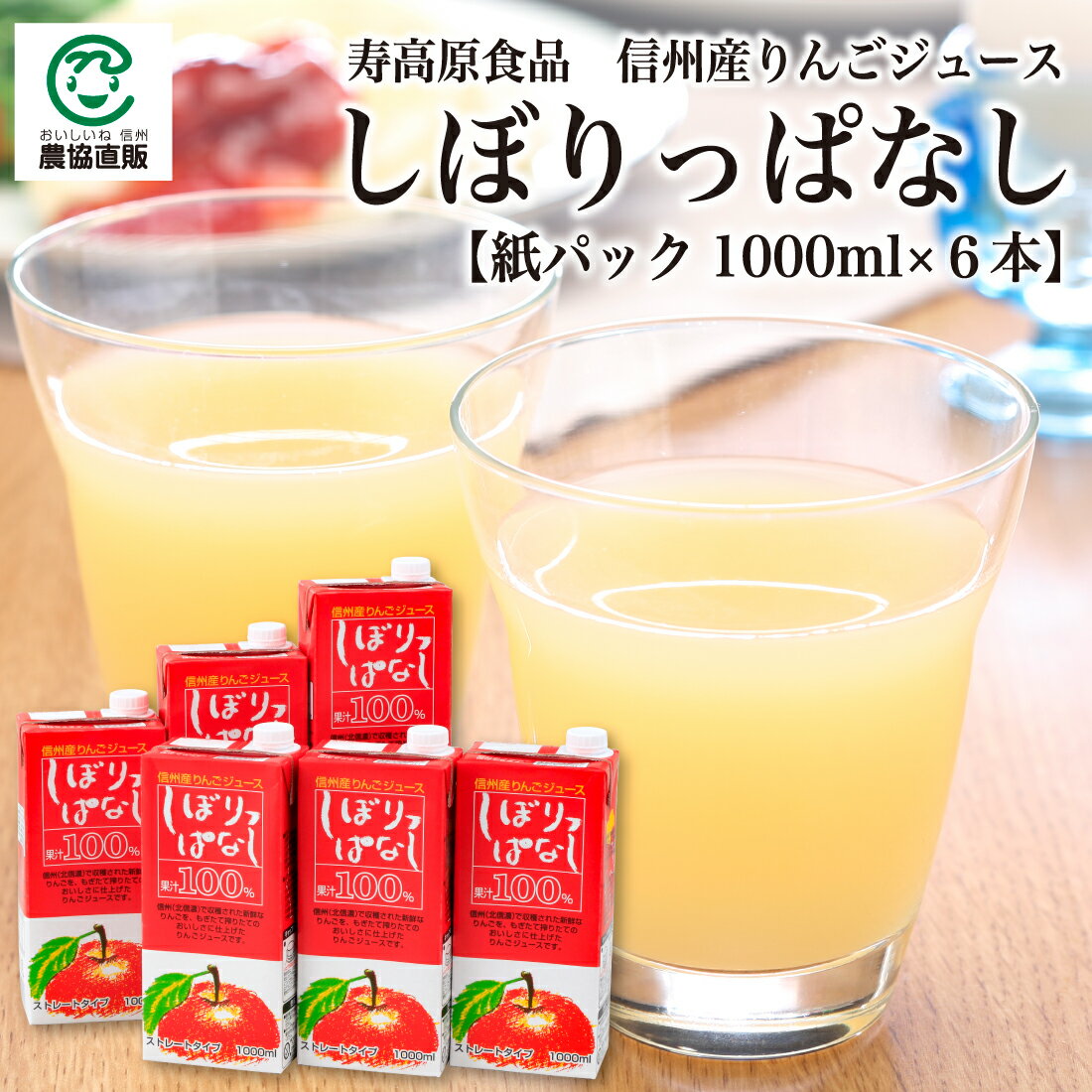 【ストレートジュース】寿高原食品 信州産りんごジュース しぼりっぱなし 紙パック【1000ml×6本】