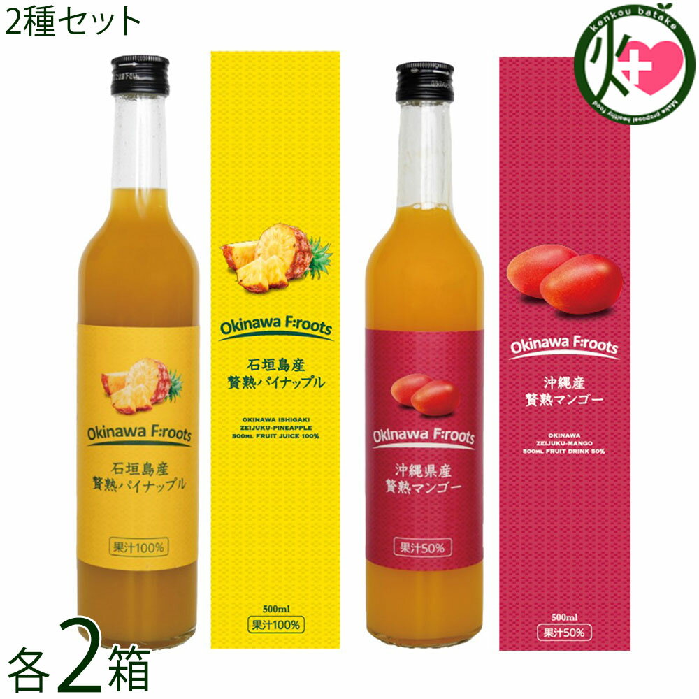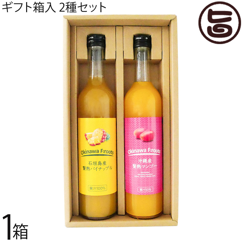 ギフト箱入 ケレス沖縄 石垣島産 贅熟パイナップル 果汁100% & 沖縄県産 贅熟マンゴー果汁50% 500ml×2本セット 沖縄