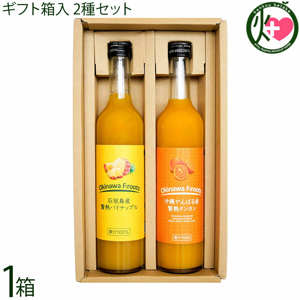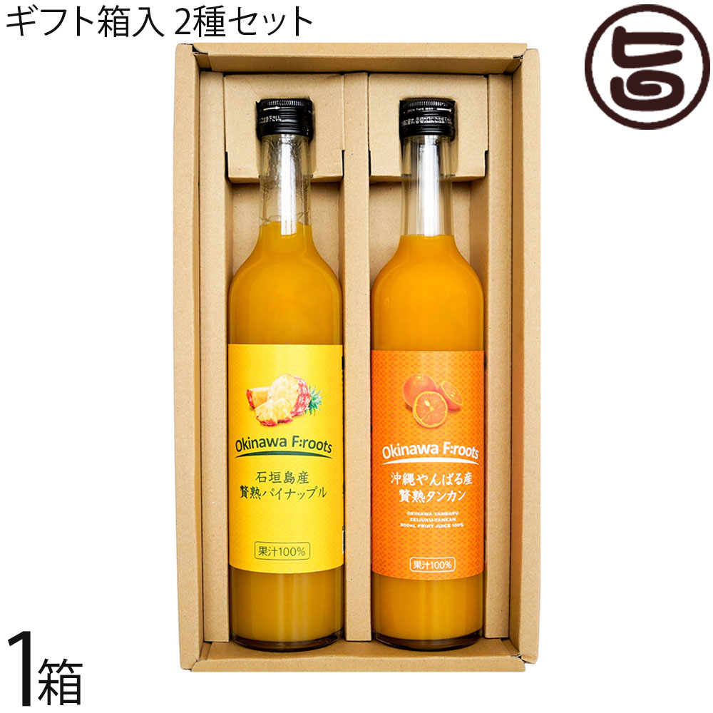 ギフト箱入 ケレス沖縄 石垣島産 贅熟パイナップル 果汁100% & 沖縄やんばる産 贅熟タンカン 果汁100% 500ml×2本セット 沖縄