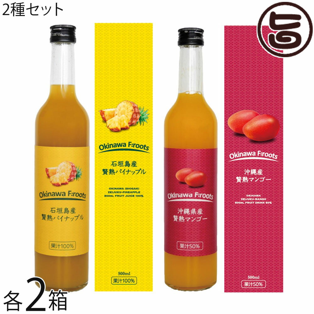 ケレス沖縄 石垣島産 贅熟パイナップル 果汁100% 500ml / 沖縄県産 贅熟マンゴー果汁50% 500ml×各2箱 沖縄