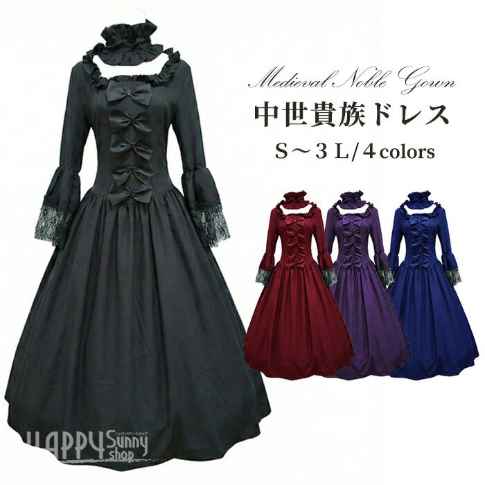 中世 貴族 ドレス レディース ロング 舞台衣装 演奏会 発表会 貴婦人 お姫様 プリンセス コスチューム レトロ アンティーク ゴシック ロリータ ワンピース 5段リボン レース ベルスリーブ ステージ衣装 イベント ハロウィン S M L LL 3L 4L 5L 大きいサイズ be217c0c0la