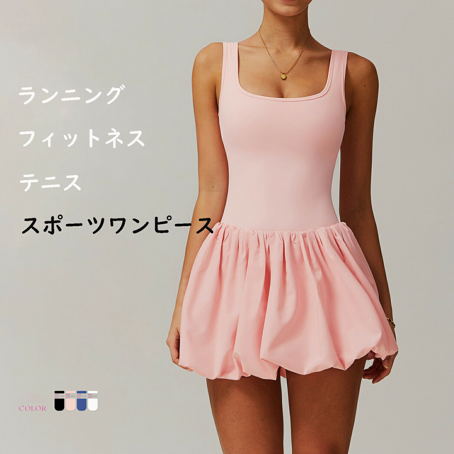 【限定価格62%OFF!10,187円→4,361円 3/11迄】ワンピース 無地 レディース 女子 ショートパンツ ヨガウェア かわいい ゴルフウェア テニス ランニング マラソン Aラインスカート 速乾 ストレッチ お洒落 カジュアル シンプル 爽やか スポーツ 通勤