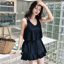 送料無料 水着 大きいサイズ ぽっちゃり水着 レディース 体型カバー 大きいサイズ水着 ぽっちゃり ワンピース ブラック 服みたいな 露出控え おしゃれ ノンワイヤー ビーチ プール 夏 リゾート 海 プール 温泉 オールインワン 温泉 ブラック