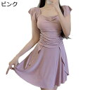 水着 レディース ワンピース 体型カバー オールインワン ビーチドレス 純色 大人かわいい フレア 胸パッド 露出控えめ 水陸両用 スイムウェア 韓国風 ファッション 海 ビーチ 水泳