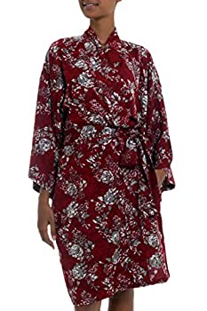 【中古】【輸入品・未使用】NOVICA レッドバティックレーヨンローブ ゴージャスなクラレット US サイズ: Large/X-Large カラー: レッド