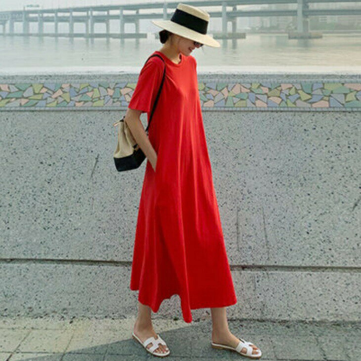 送料無料 ゆるロングワンピース レディース ロングワンピース フレア ロング丈 ナチュラル 部屋着 夏 ワンピース きれいめ リラックス 半袖 ゆるワンピ ゆったり マタニティ ママ リゾート 海 ブルー ベージュ レッド ブラック 黒 体型カバー