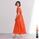 【店内全品20%OFFクーポン】12/11 1:59まで■コットンVネックフレンチスリーブワンピース ワンピース レディース ロング丈 Vネック ノースリーブ ギャザー フレア コットン 綿 シンプル