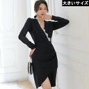 大きいサイズ レディース タイトワンピース セミフォーマル カシュクール 膝丈 LL 3L 4L 5L 6L ブラック 10代 20代 30代 40代 50代 13号 15号 17号 19号 21号 新入荷 メール便不可