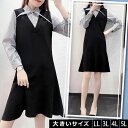 大きいサイズ レディース 重ね着風ワンピース 黒 シャツ付きワンピ ストライプ柄 LL 3L 4L 5L ブラック 10代 20代 30代 13号 15号 17号 19号 春 新入荷 メール便不可