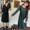 大きいサイズ レディース ワンピース 無地 長袖 ウエストギャザー LL 3L 4L 5L ブラック グリーン 20代 30代 40代 50代 13号 15号 17号 19号 新入荷 メール便可