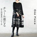 ワンピース チュニック チュール重なる大人の甘辛ワンピース ブラック 異素材 春 秋 冬 秋冬 柄 シック モノトーン フェミニン クール モード エレガントー1/17