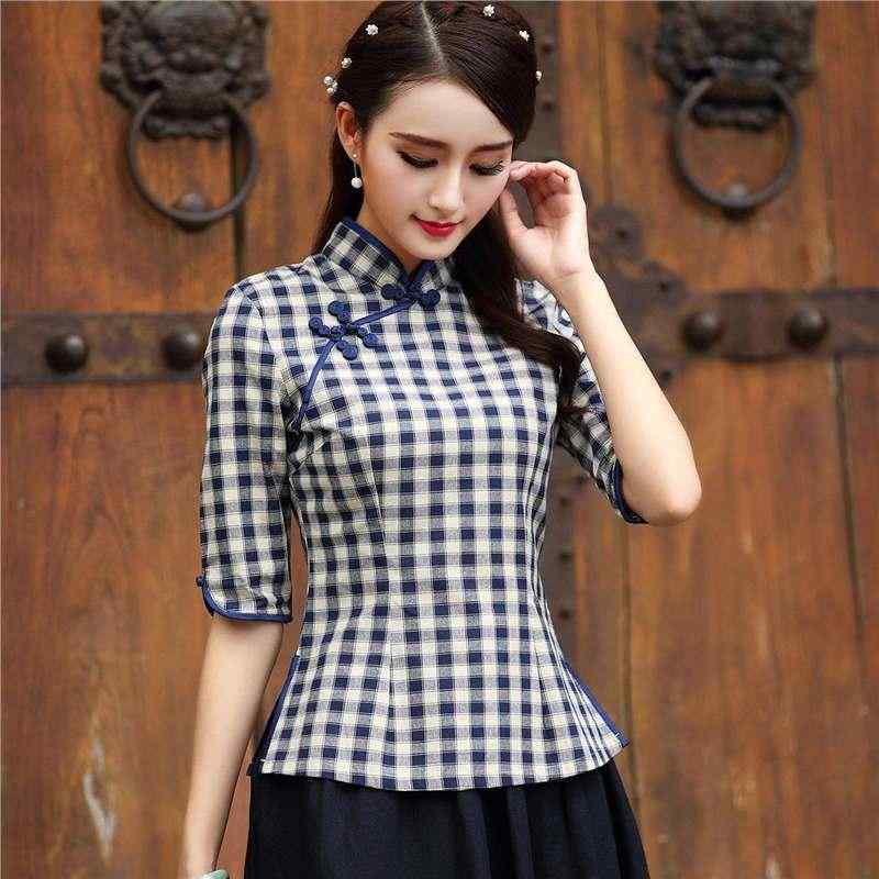 チャイナシャツ レディース 中国風 オリエンタル レトロ クラシック 半袖 ポロ襟 丸襟 ゆったり 大きいサイズ 体型カバー スタイルアップ トップス ポリエステル スパンデックス 伸縮性 エレガント 上品 カジュアル きれいめ
