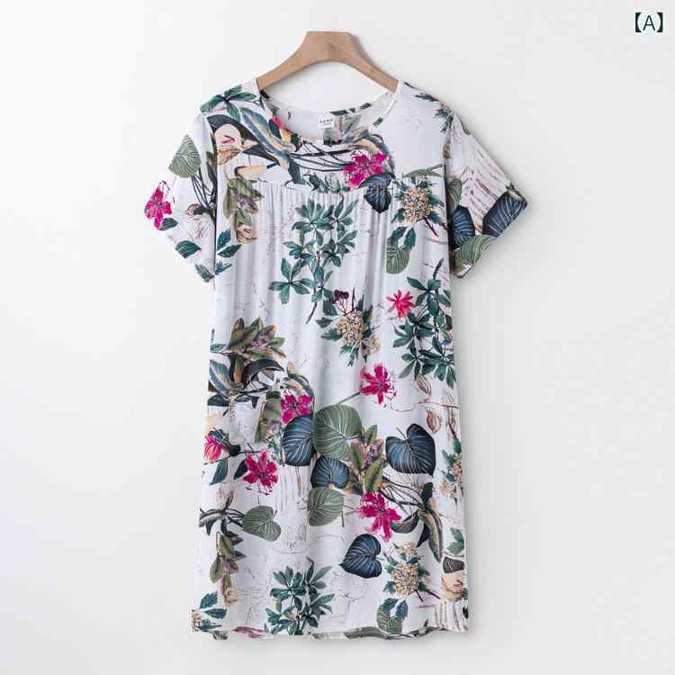 ・柄: 植物柄・流行要素: クラッシュ加工・加工: プリント・主な素材: 綿95%以上・カラー: ホワイト・サイズ: フリー・スタイル: 日韓カジュアル・スカートシルエット: Aライン・ネックライン: クルーネック・対象年齢: 大人・着丈: ミディ丈・袖タイプ: レギュラー袖・袖丈: 三分丈・性別: レディース
