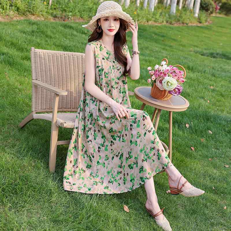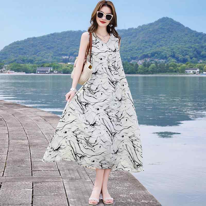 レディース マキシ丈ノースリーブワンピース の 魅惑的 風 ニット ノースリーブワンピース 夏の 新型 中腰 カバー a 字中 ロング スカート 女