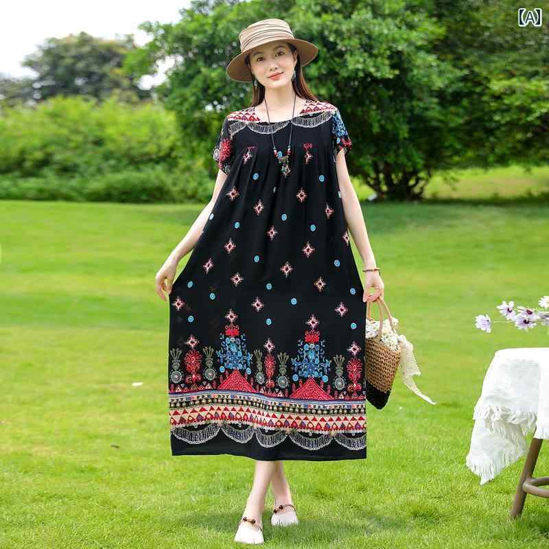 ドレス 女性 ファッション 夏 マキシ ワンピース スタイリッシュ ママ 大きいサイズ レーヨン素材 ゆったり お腹 カバー ビーチ シンプル カジュアル 薄手