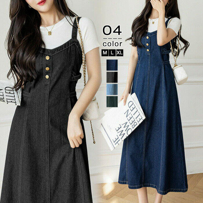 サロペット ワンピース レディース デニム ノースリーブ 秋 オーバーオール 大きいサイズ デニムマキシワンピース 夏 体型カバー オールインワン ファッション デニムワンピース レイヤード 重ね着 デニム 黒 ブラック