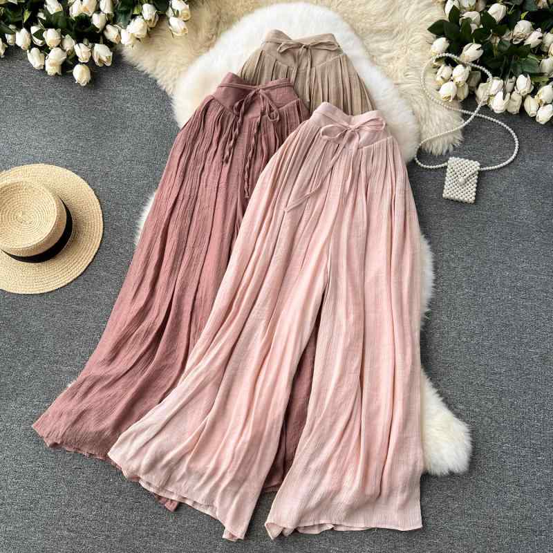パンツ レディース 春夏 シフォン ワイドパンツ スカンツ ドレープ感 薄手 ハイウエスト 体型カバー 細見え ゆったり リラックス カジュアル イージーパンツ 伸縮性 快適 涼しい