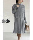 (S~3L対応)パールを散りばめた手元フリルの2点セット【set】 ワンピース ベスト ワンピ 40代 50代 セット コーデセット パール きれいめ おでかけ cawaii ニットワンピ