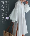 (S~2L対応)首が長く見える 百合花ポワン ロングシャツ