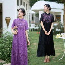 ・カテゴリ: ワンピース・スタイル: レトロ・主な素材: ソフトサテン95%以上・ネックライン: スタンドカラー・袖丈: 半袖・袖タイプ: レギュラー・ウエスト: ハイウエスト・スカート丈: ロング丈・スカートシルエット: Aライン・柄: 花柄・加工: 刺繍・開閉タイプ: プルオーバー・カラー展開: ブラック、パープル・サイズ展開: L、XL