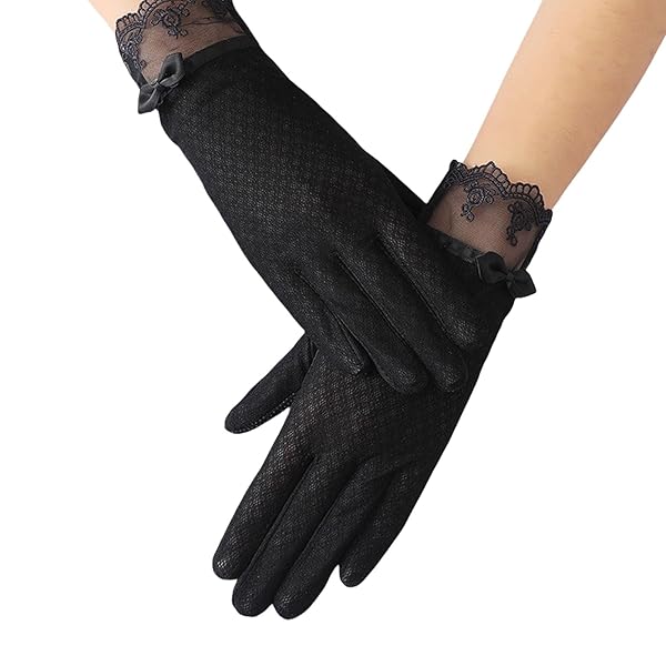 レディース 手袋 レース uvカット グローブ 夏 スマホ対応 滑り止め おしゃれ ショート 薄手 UV手袋 日焼け止め 紫外線対策 花嫁 結婚式 自転車 バイク 車 運転 (D-ブラック)
