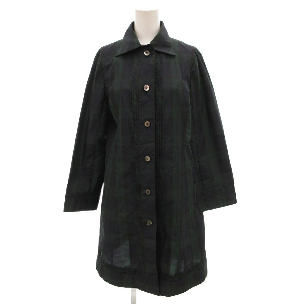 【中古】アマカ AMACA ワンピース ベルト付き ブラックウォッチ チェック 長袖 ひざ丈 38 紺 ネイビー 緑 グリーン /FF レディース 【ベクトル 古着】 250905