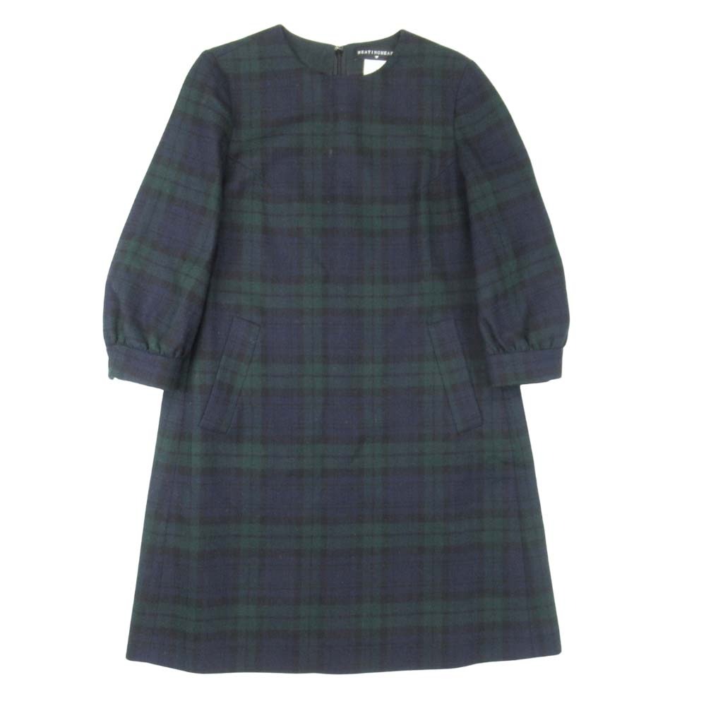 【中古】美品 BEATING HEART ビーティングハート ワンピース ブラックウォッチ チェック柄 七分袖 ドレス 膝丈 1 ネイビー グリーン レディース Luxs ブランド古着のリュクス