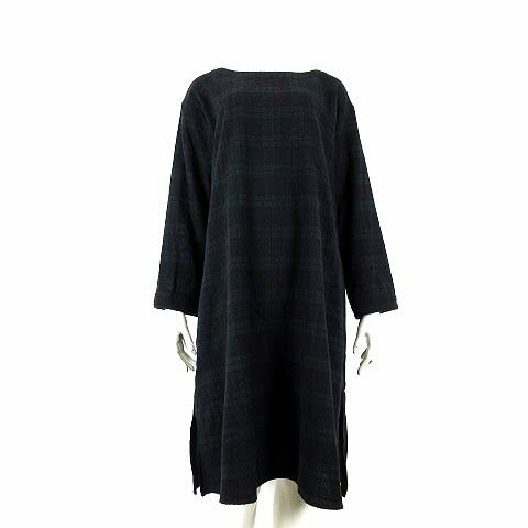 【中古】シーズンリーズン SEASON REASON ワンピース ブラックウォッチ チェック ボートネック ウール混 ドロップショルダー 長袖 L 黒 ブラック 深緑 ダークグリーン 紺 ネイビー レディース 【ベクトル 古着】 251114