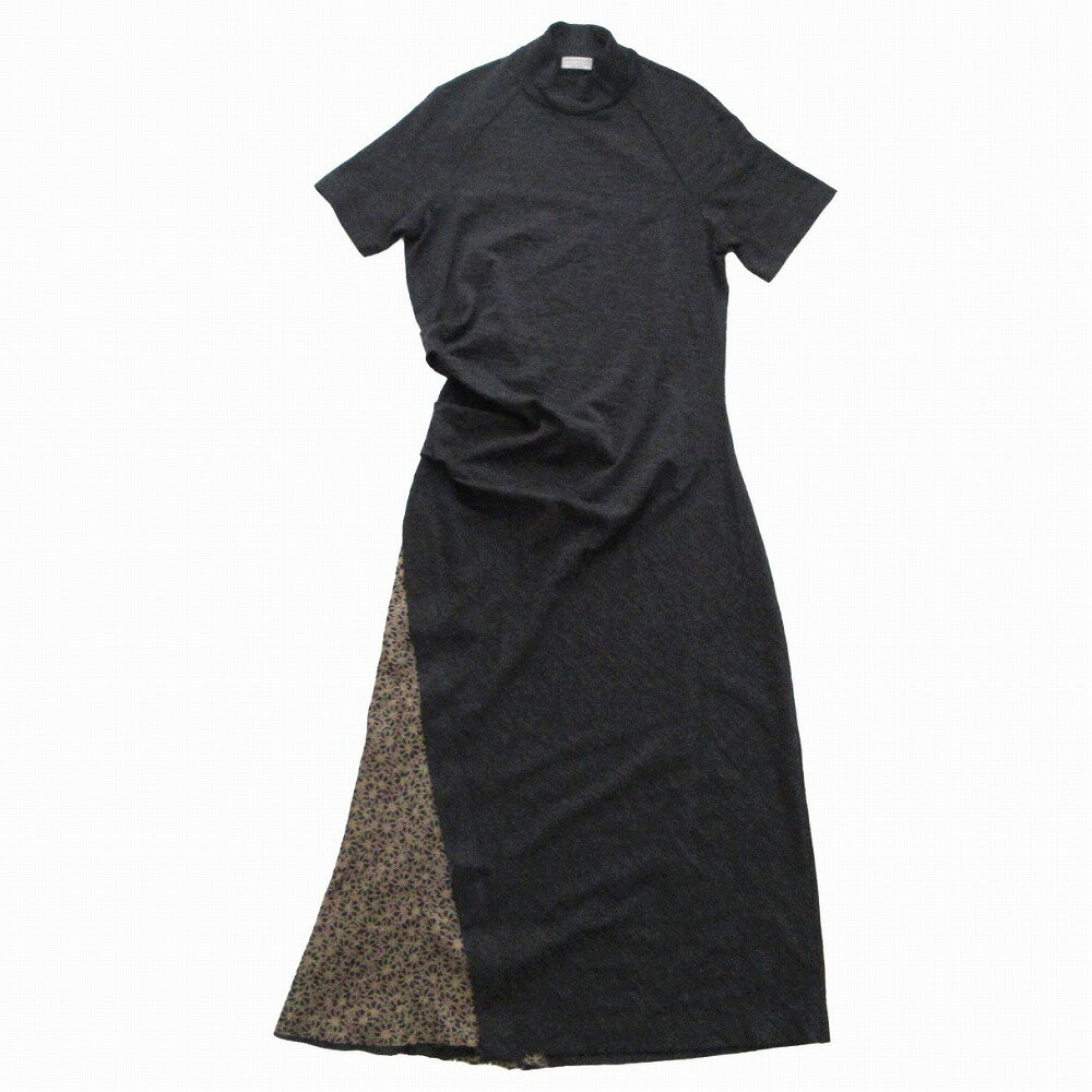 BRUNELLO CUCINELLI ブルネロクチネリ ハイネック ストレッチ レイヤード ドレス ワンピース 半袖 ロング サイズL グレー 【中古】
