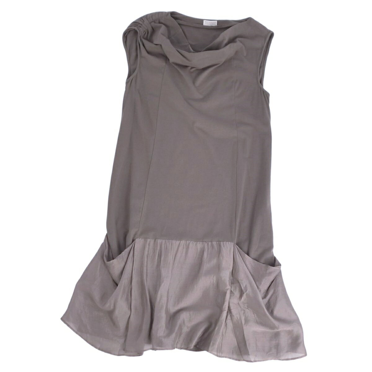 【美品】ブルネロクチネリ BRUNELLO CUCINELLI ワンピース ノースリーブ コットン トップス レディース イタリア製 XL グレー【中古】