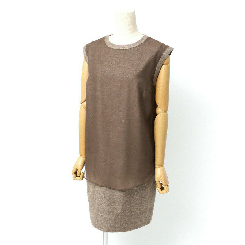 【美品】ブルネロクチネリ BRUNELLO CUCINELLI ワンピース チュニック タンクトップ ノースリーブ ウール イタリア製 トップス レディース I42 F38 USA6 (M相当) グレージュ【中古】