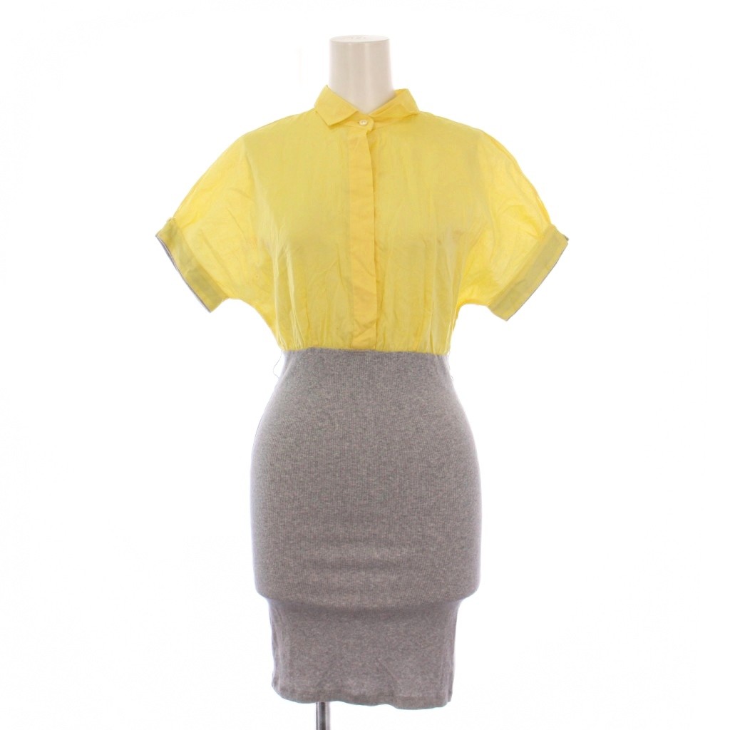 【中古】ブルネロクチネリ BRUNELLO CUCINELLI タイトワンピース ミニ丈 ニット シャツ 切替 半袖 レギュラーカラー S グレー 黄色 イエロー /BB レディース 【ベクトル 古着】 250821
