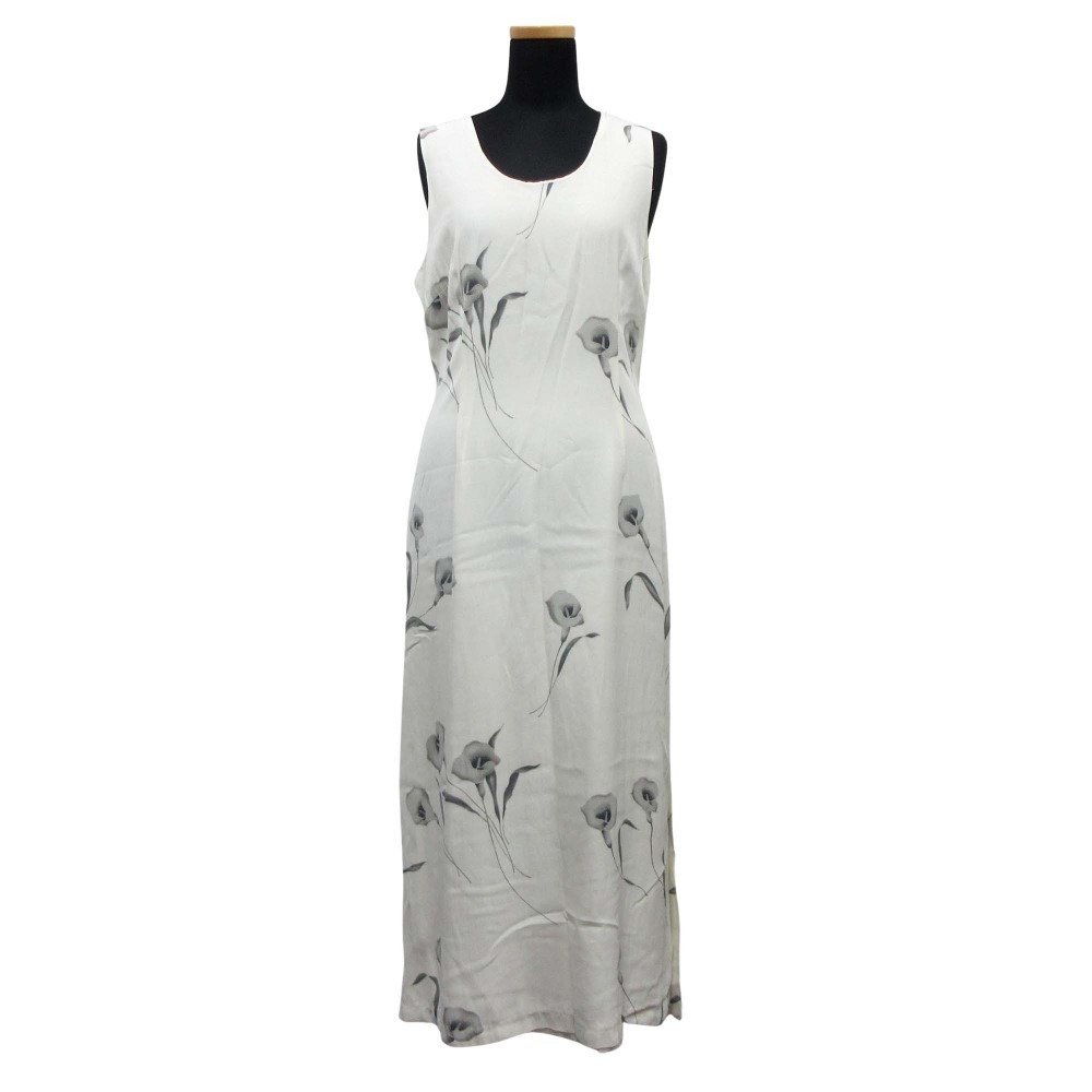 【中古】 CAROLL キャロル PARIS ノースリーブ 花柄 ワンピース サイドスリット タイト ロング バックジップ サイズ40 白系 ホワイト レディース Luxs ブランド古着のリュクス
