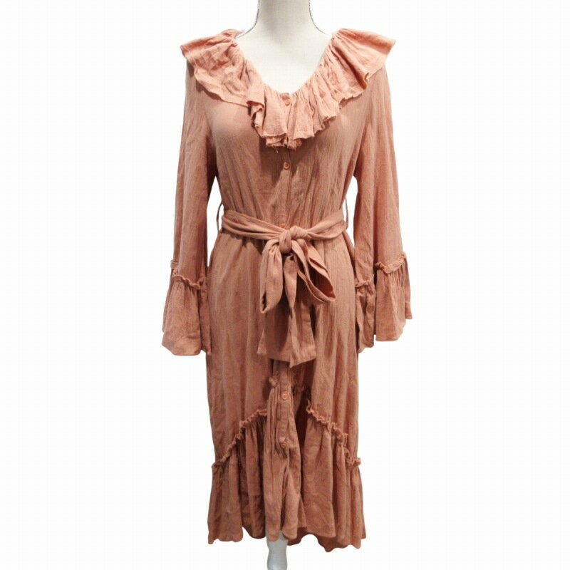【中古】カロリナ グレイサー CAROLINA GLASER ワンピース フリル カットオフ ギャザー リボン ベルト 長袖 ロング ピンク 系 0707 レディース 【ベクトル 古着】 250707