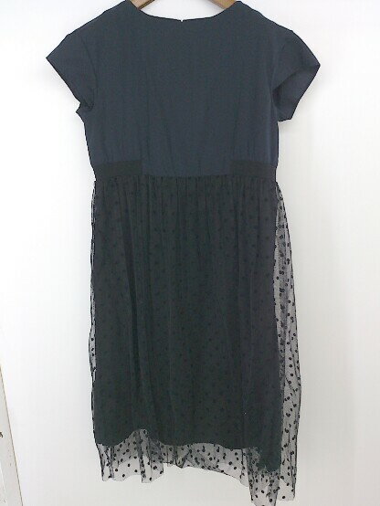 ◇ CAROLINA GLASER 切替 チュール ドット 水玉 半袖 膝下丈 ワンピース 表記なし ブラック ネイビー レディース P 【中古】