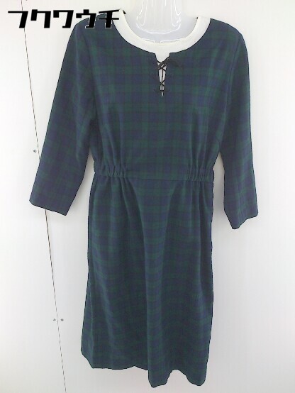 ◇ CAROLINA GLASER カロリナ グレイサー チェック 長袖 膝下丈 ワンピース ネイビー グリーン系 レディース 【中古】