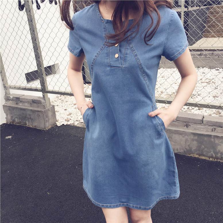 デニムミニワンピース ワンピース レディース デニムワンピース スキッパーネック 半袖 春 夏 秋 ミニワンピース デニム ドレス ショート丈 送料無料 個性的 水色 青 ライトブルー ダークブルー 大人可愛い きれいめ 上品 エレガント