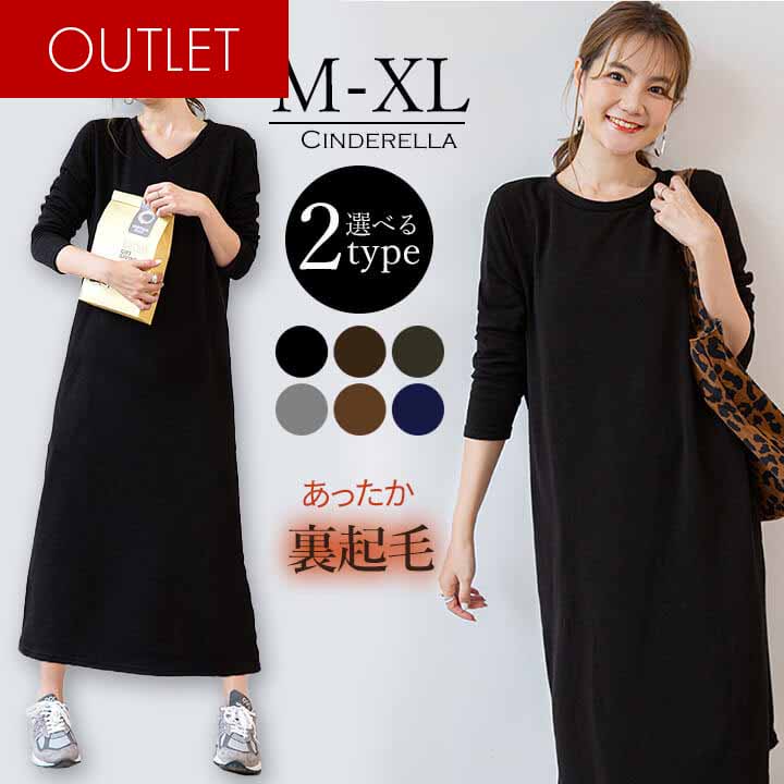 【訳あり】 ワンピース 裏起毛 Uネック Vネック 温かい あったかい お洒落 スウェット生地 シンプル 厚手 秋 冬 ミモレ丈 エレガント 大人 落ち着き ママ レディース ブラック 黒 ブラウン 茶 ダークグリーン 緑 グレー 灰 ライトブラウン 肌 ネイビー 紺 藍