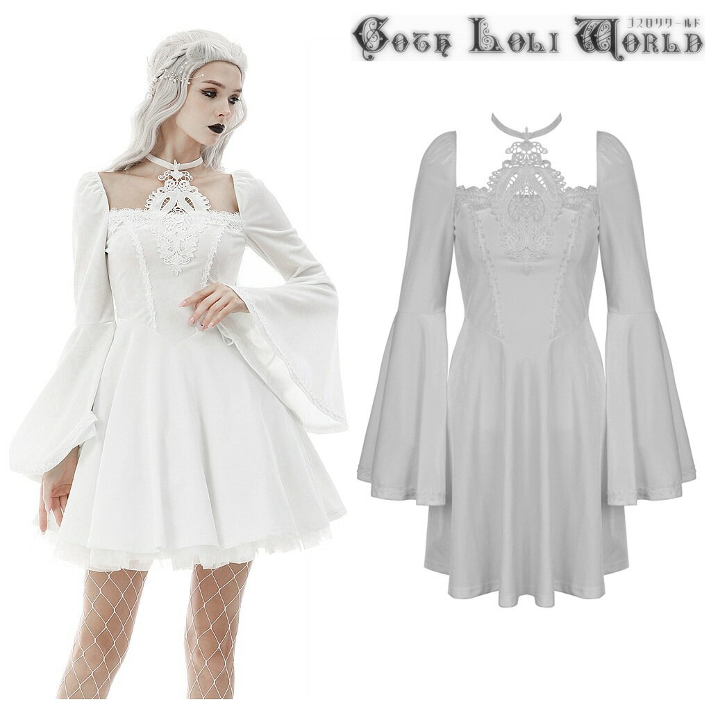 当日発送 即納 【ゴスロリワールド】DIL ゴスロリ スクエアネックベルスリーブベロア ワンピース 白色 ゴシック パンク ロック ロリータ ビジュアル系 ヴィジュアル系 V系 ダーク レディース ファッション ライブ 舞台 ステージ 衣装 コスプレ イベント ハロウィン 仮装