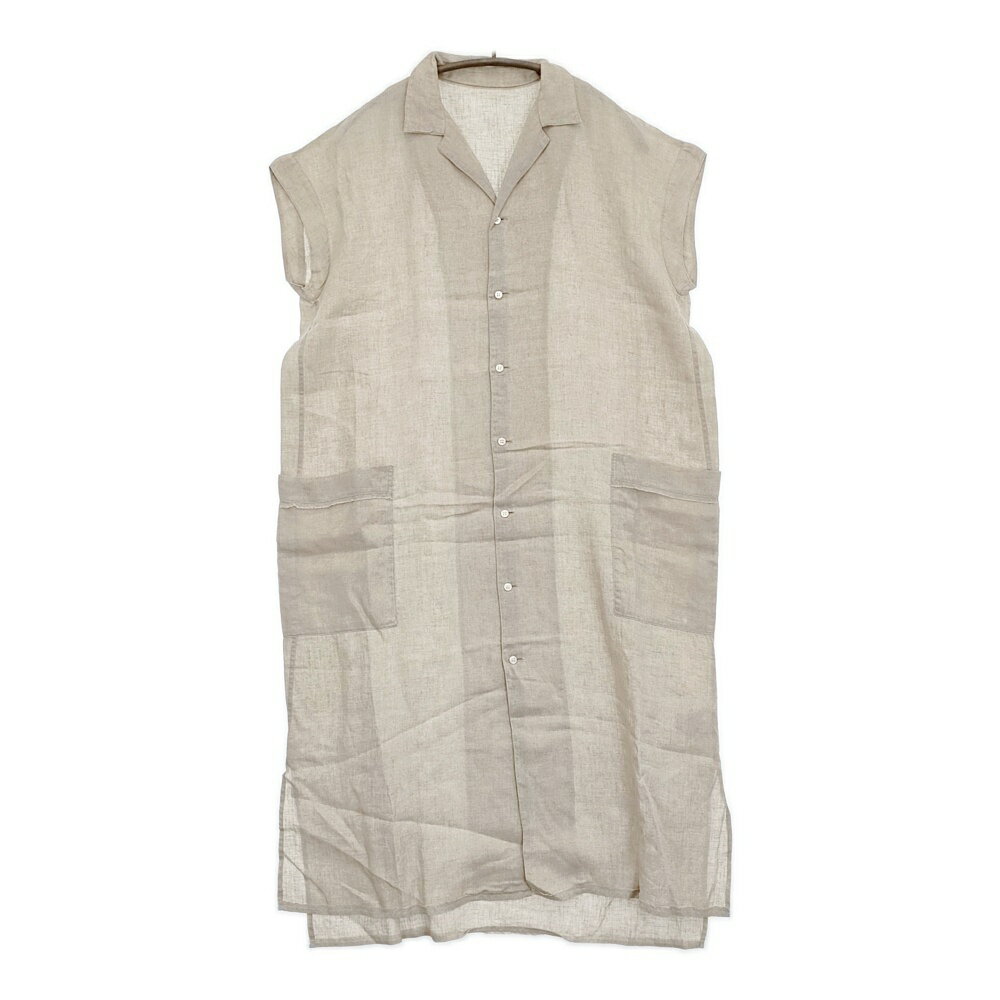 GALERIE VIE リネン オープンカラーシャツワンピース サイズ36 定価35200円 ロング ベージュ レディース ギャルリーヴィー【中古】5-0806S