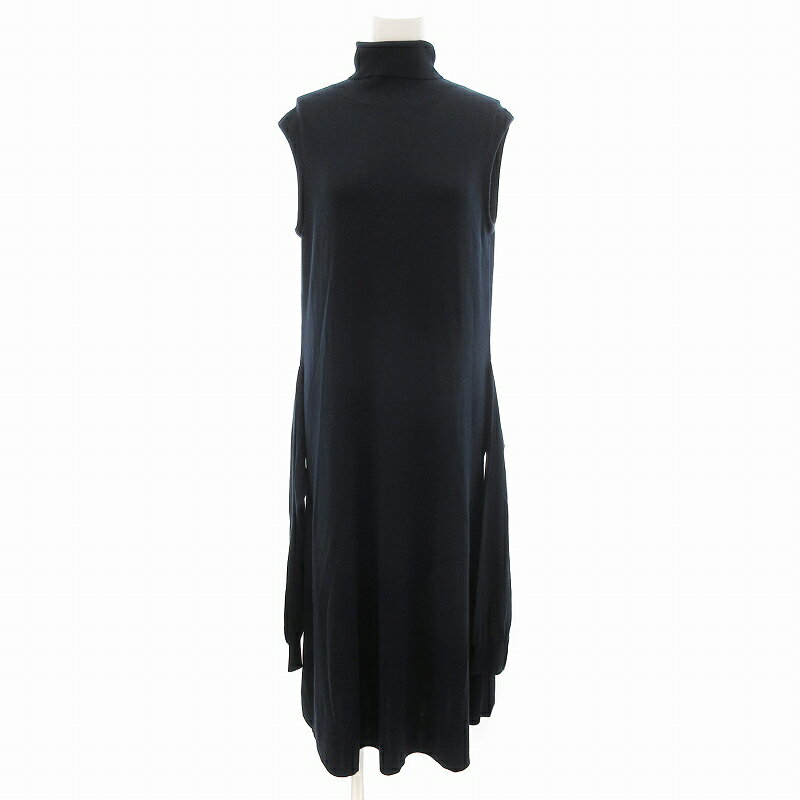 【中古】ギャルリーヴィー GALERIE VIE トゥモローランド ニット ワンピース タートルネック コットン シルク混 ノースリーブ 2WAY ロング 長袖 1 紺 ネイビー /FF レディース 【ベクトル 古着】 250726