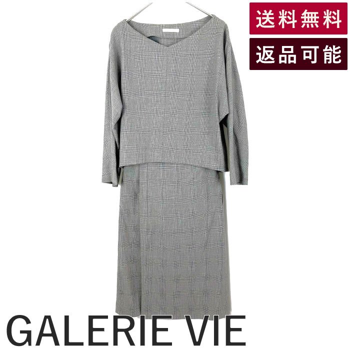【中古】ギャルリーヴィー GALERIE VIE グレンチェックワンピース セパレート風 ウール グレー系 送料無料 23-06-81-06001 h1227n0194 返品可 古着 中古 ブランド古着DB