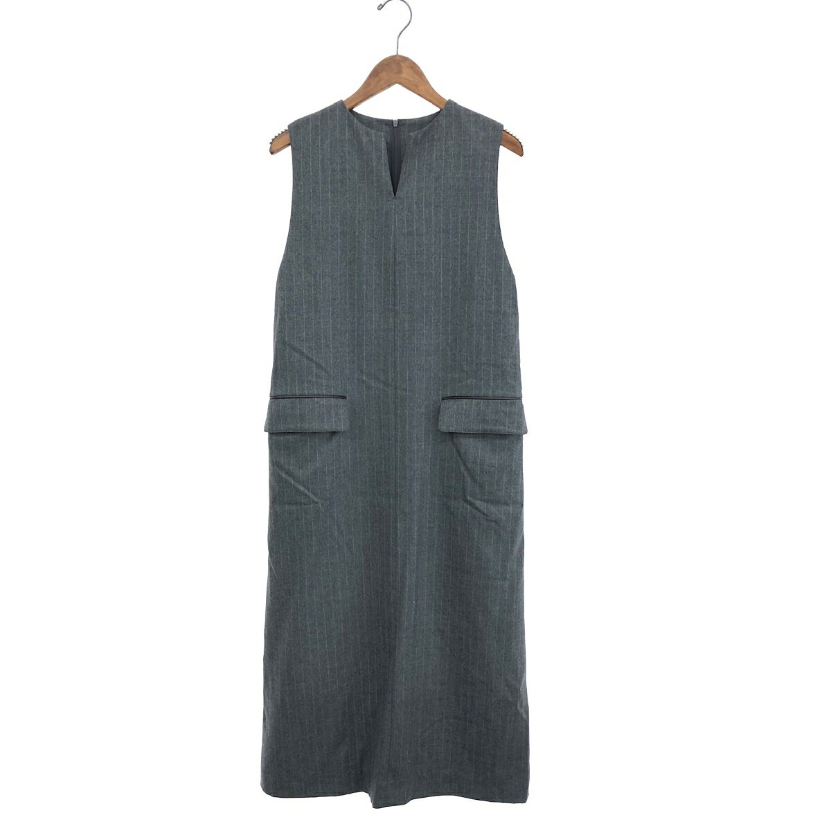 GALERIE VIE ギャルリーヴィー ノースリーブワンピース サイズ:34 23063406309 グレー ウール レディース ストライプ 【中古】