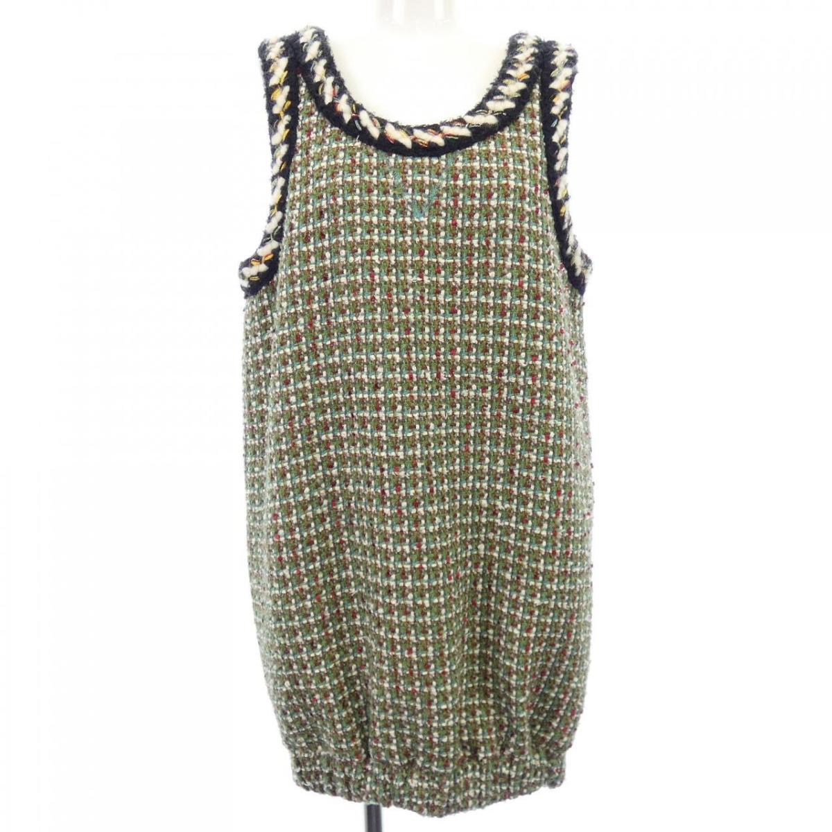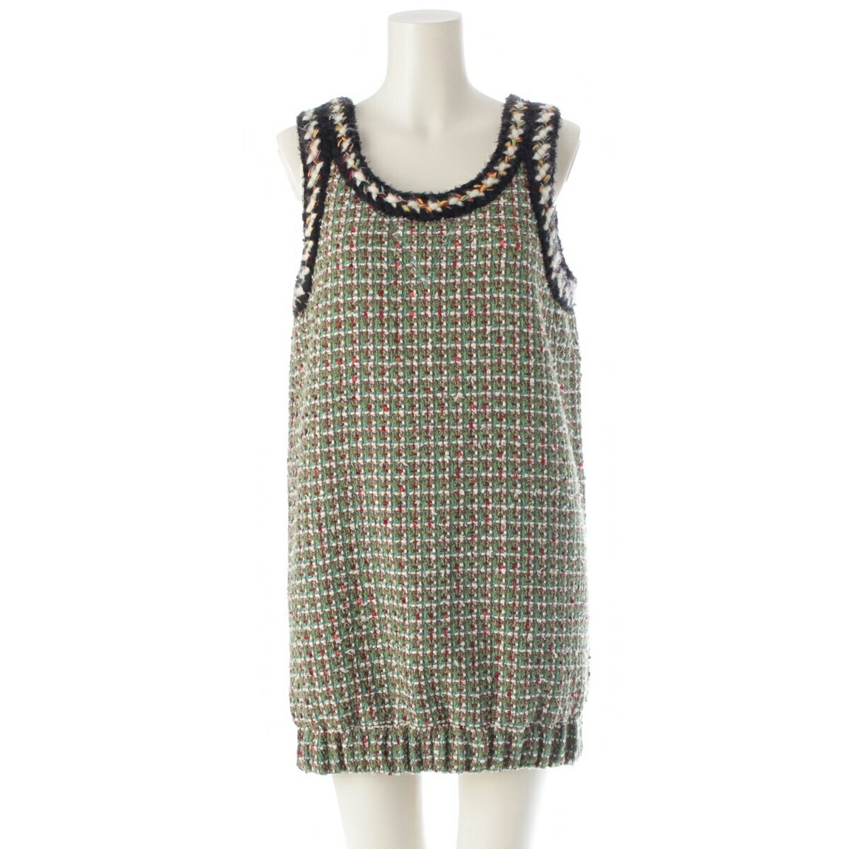 シャネル CHANEL ココボタン ツイード ノースリーブ ワンピース ドレス P75267 グリーン 36【中古】【正規品保証】