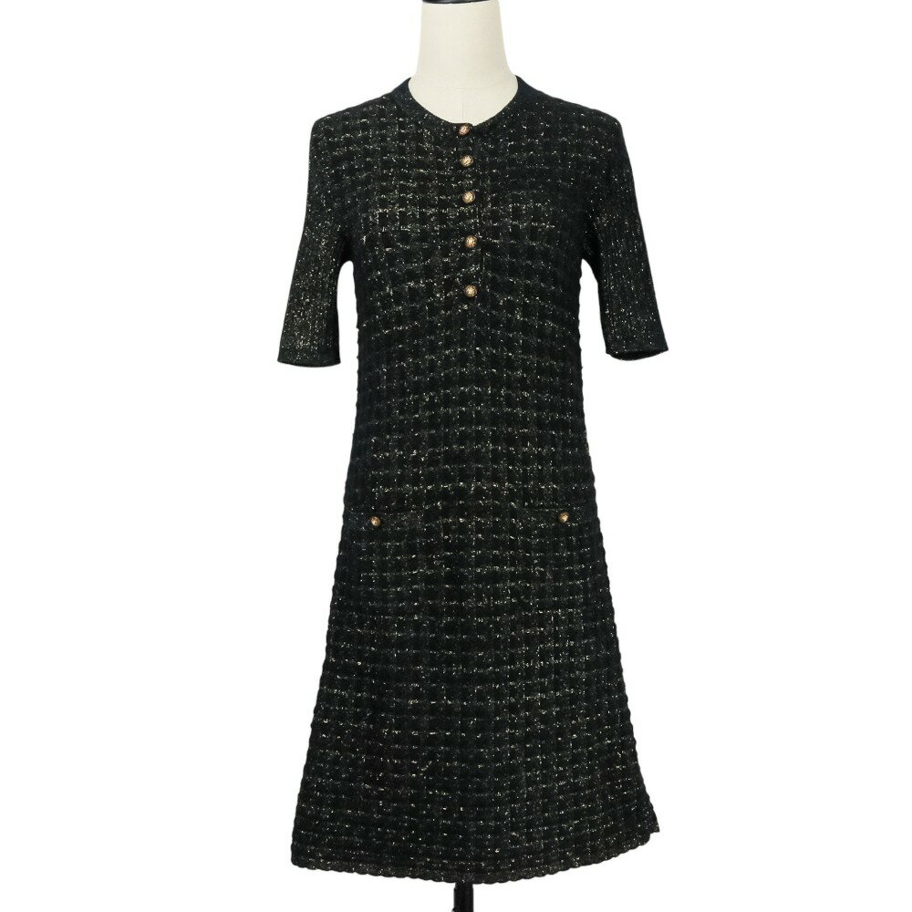 【中古】美品 CHANEL シャネル ライオンボタン ラメニットドレス ワンピース P57107 サイズ34 ブラック ゴールドカラー レディース Luxs ブランド古着のリュクス