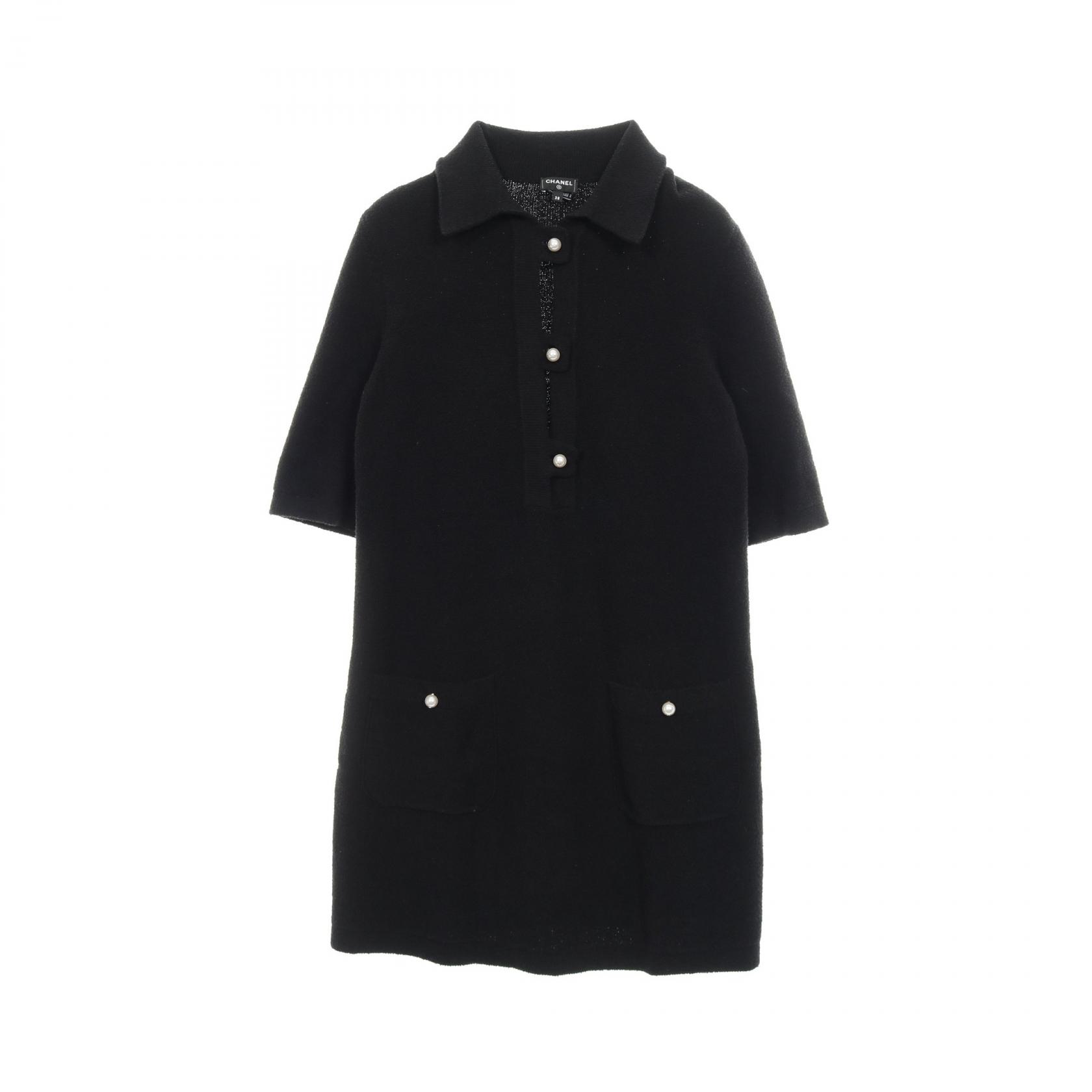 【10%OFFクーポン対象】シャネル CHANEL ココマーク フェイクパールボタン ワンピース 衣料品 トップス コットン レディース ブラック系 P74602k10722 【中古】