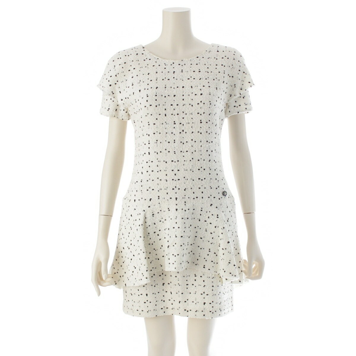 シャネル CHANEL コットン×ナイロン ココマーク ツイード ワンピース P56044 ホワイト×ブラック 36【中古】【正規品保証】