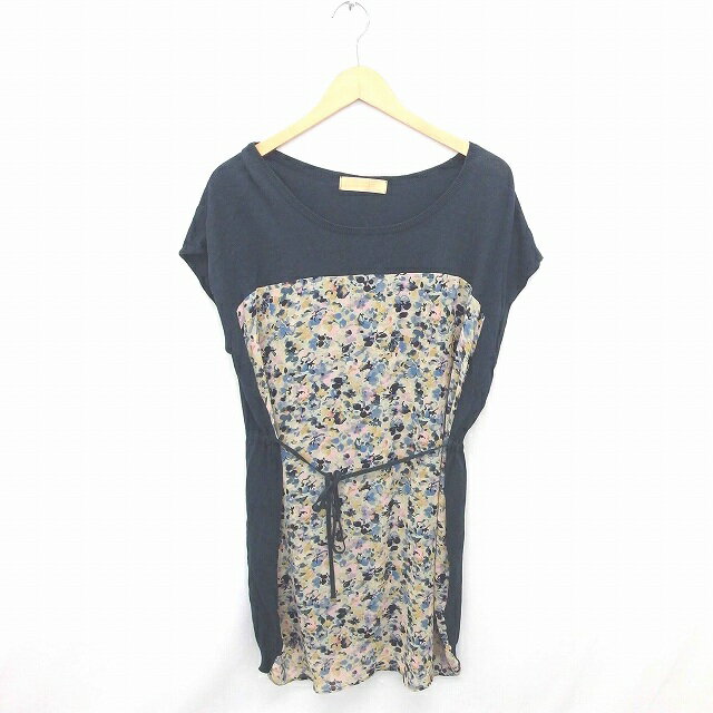 【中古】デンドロビウム DENDROBIUM ワンピース 膝下丈 ニット 花柄 プルオーバー 切替 薄手 半袖 38 紺 薄茶 ネイビー ベージュ /TT31 レディース 【ベクトル 古着】 200930 ブランド古着ベクトルプレミアム店